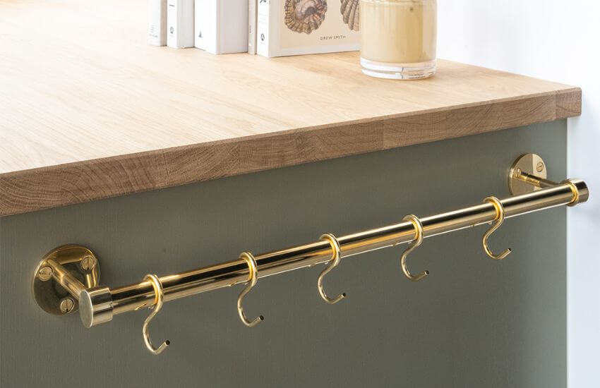 Voor wie de opbergruimte in de keuken wil maximaliseren, bieden we ook keukenrelingen met haken. Een keukenreling is perfect om keukengerei, lepels, pannen en keukendoeken op te hangen, terwijl er waardevolle werkruimte vrijkomt. Onze keukenrelingen in zwart, roestvrij staal en messing zijn ontworpen om te combineren met overige beslag, knoppen en handgrepen, zodat je een uniforme en stijlvolle uitstraling in de keuken creëert.